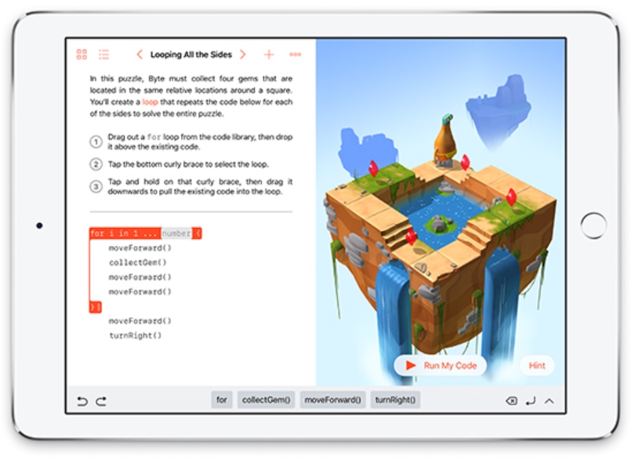 Swift Playground C'est une application gratuite créée par Apple pour promouvoir son langage de developpement "swift". Elle ne fonctionne pour l'instant que sur iPad, mais permet de découvrir les bases de la programmation dans un cadre ludique.